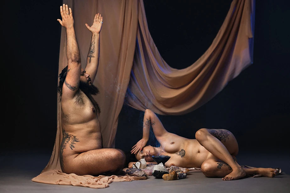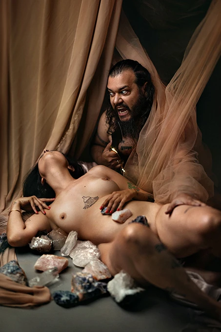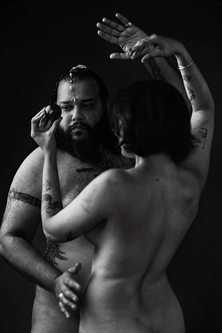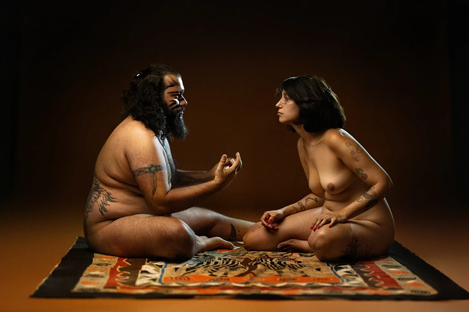 Two bodies ancient, humans carrying the memory of creation and the echo of destruction in a single breath.